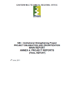 Annex 4 of the Main Report of the detailed delineation, description, and prioritization of 10 of the investment projects located in sub-basins other than the Abbay in Ethiopia that were identified by the 2007 Cooperative Regional Assessment (CRA) of watershed management in the Eastern Nile Basin. The Main Report contains detailed profiles of projects of manageable size (1000 – 2000 sq. km) and has 3 Annexes, one of which is an updated version of the Table of Project Profiles in the CRA. Annex 4 with detailed Project Repots and an Atlas of Maps were also produced as part of this initiative, which was supported by the NBI Institutional Strengthening Project funded by the Nile Basin Trust Fund managed by the World Bank (2008 – 2012).