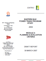 Report of Module 4 (Planning and Evaluation Criteria) of Phase I of the Eastern Nile Power Trade Program Study, implemented by ENTRO from 2006 – 2008, aiming to (1) establish a multi-criteria methodology to rank 24 potential hydropower candidates (identified in M3 - Energy Sector Profiles and Projections) within each country (Egypt, Ethiopia and Sudan), an essential input to Module 6 (Coordinated regional Investment Planning); (2) review criteria currently used in Egypt, Ethiopia and Sudan, to determine generation and transmission investment, and to (3) propose common criteria to determine the coordinated regional investment plan (Module 6).