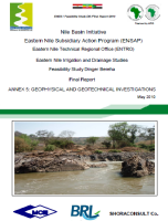 Annex 5 (Geophysical and Geotechnical Investigations) in Volume 3 of the Main Report (Volume 1) on the Feasibility Study of the Dinger Bereha Irrigation Project, which was carried out as part of Phase 2 of the Eastern Nile Irrigation and Drainage Studies. The Main Report is in Volume I and the remaining volumes contain 13 Annexes, as well as maps and drawings.